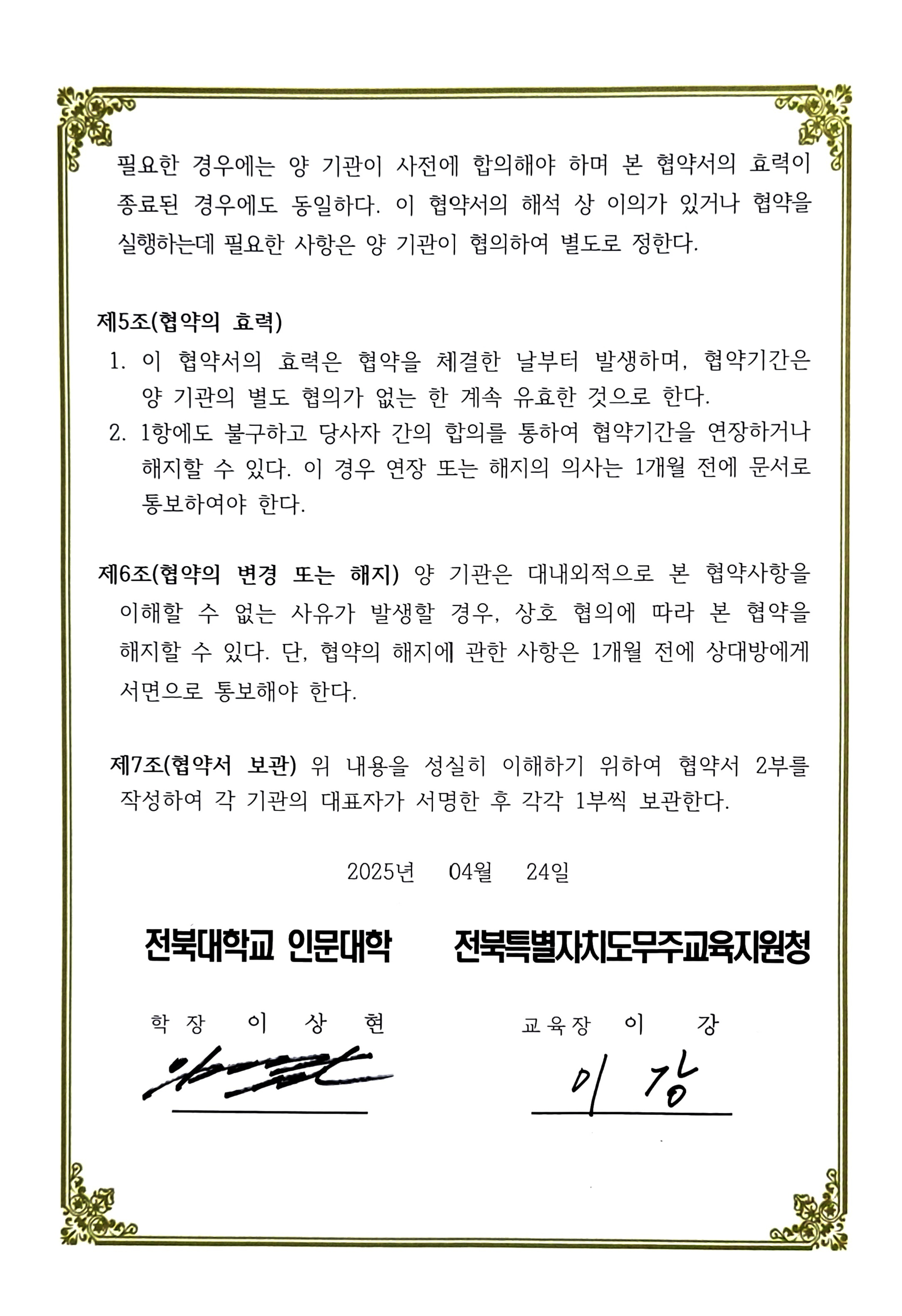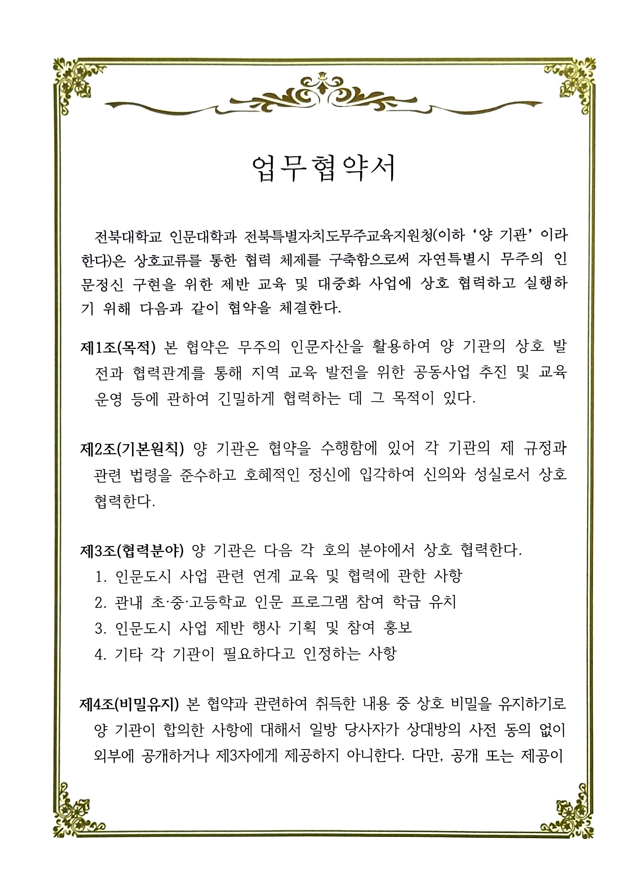 인문학연구소-무주교육지원청 MOU 협약서