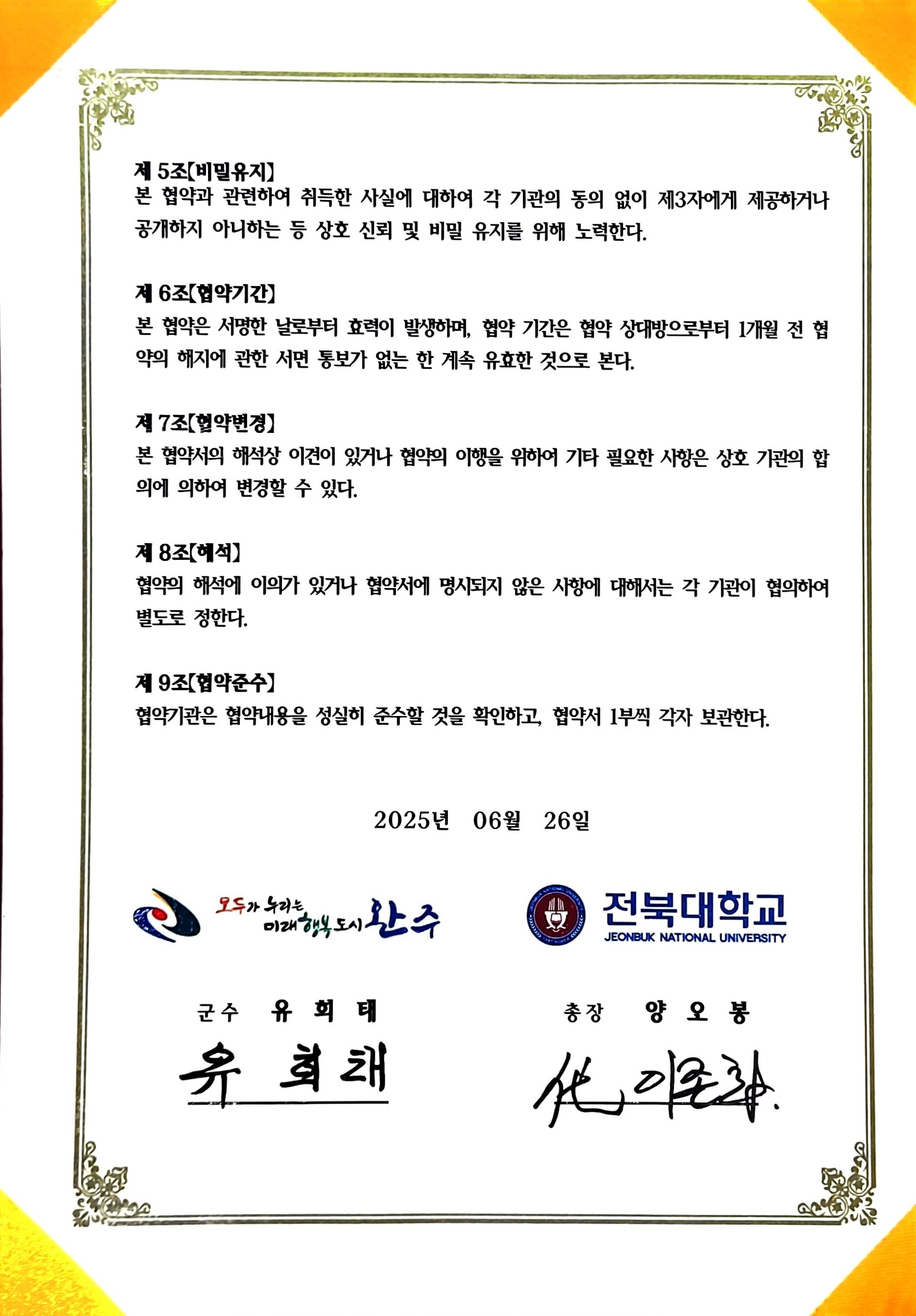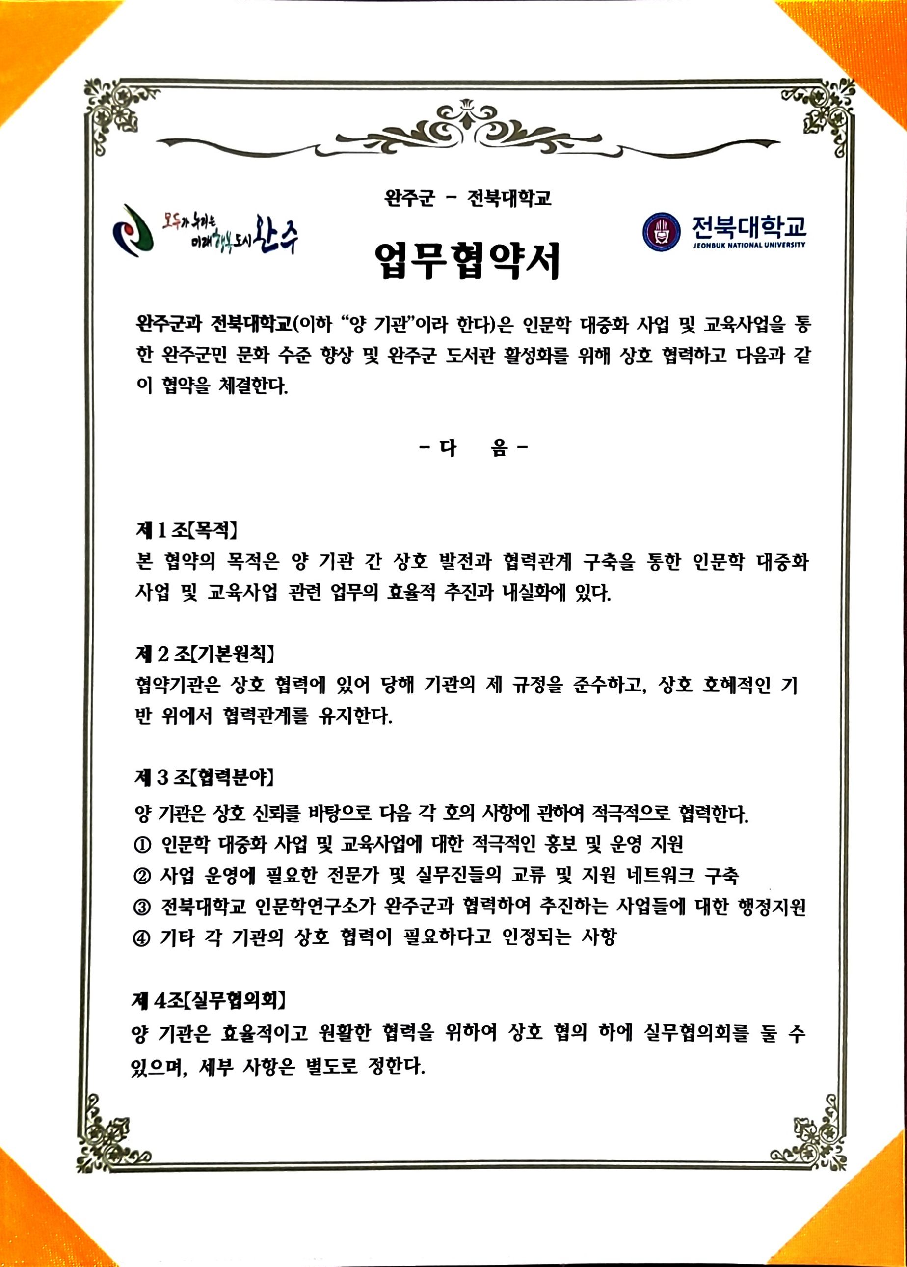 전북대학교 인문학연구소 - 완주군 MOU협약서