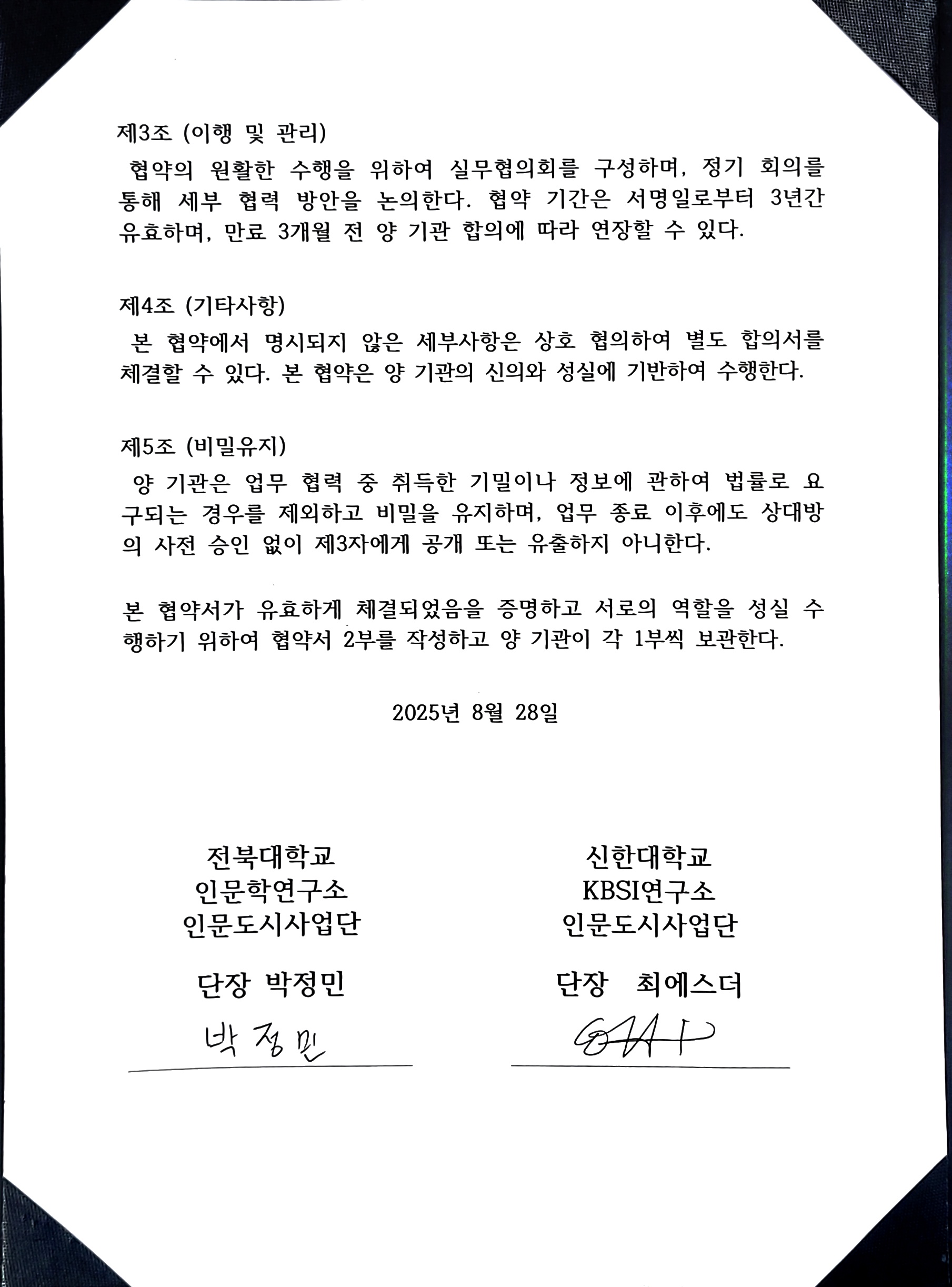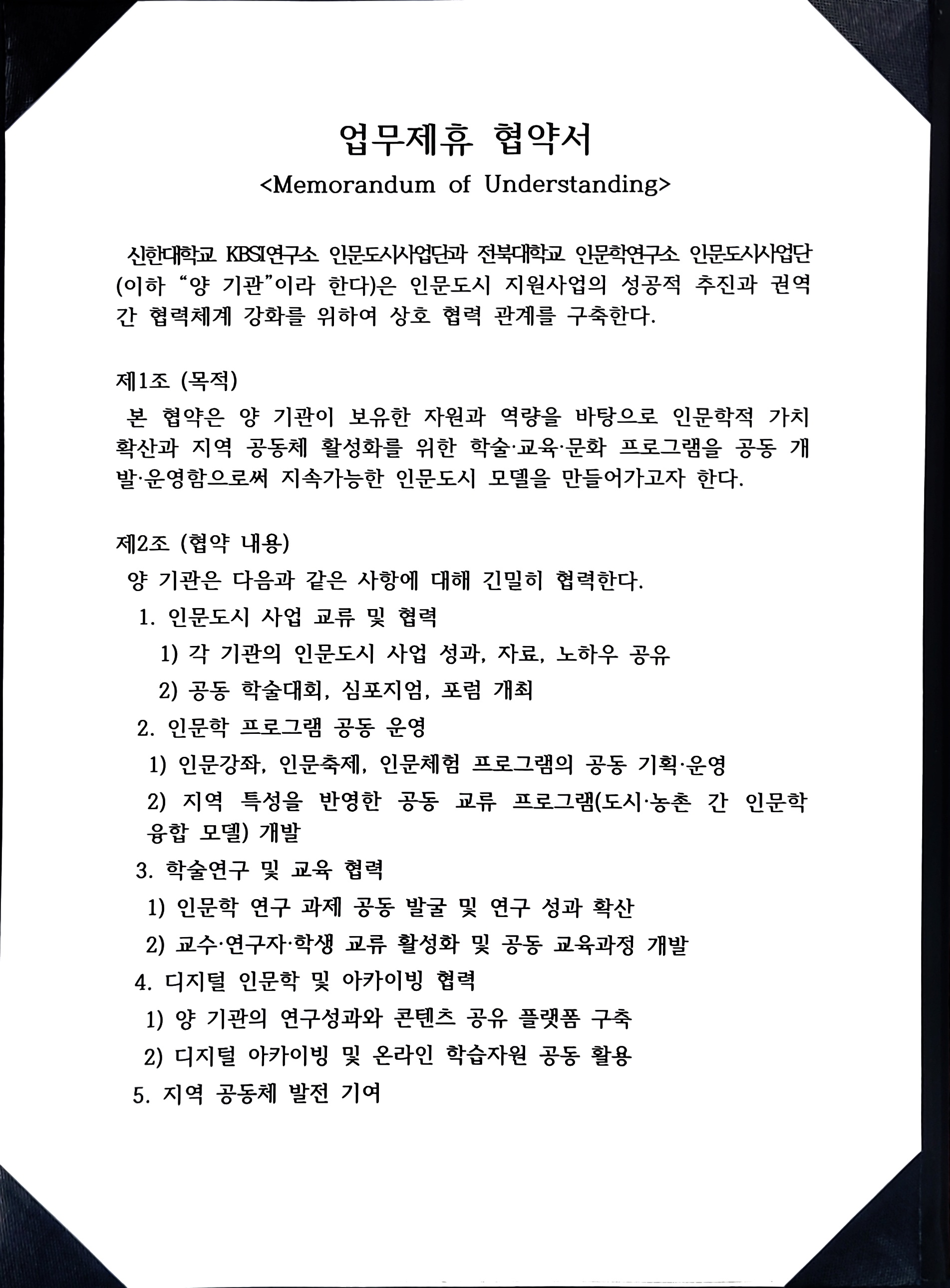 전북대학교 인문학연구소 - 신한대학교 KBSI연구소 인문도시사업단 MOU협약서