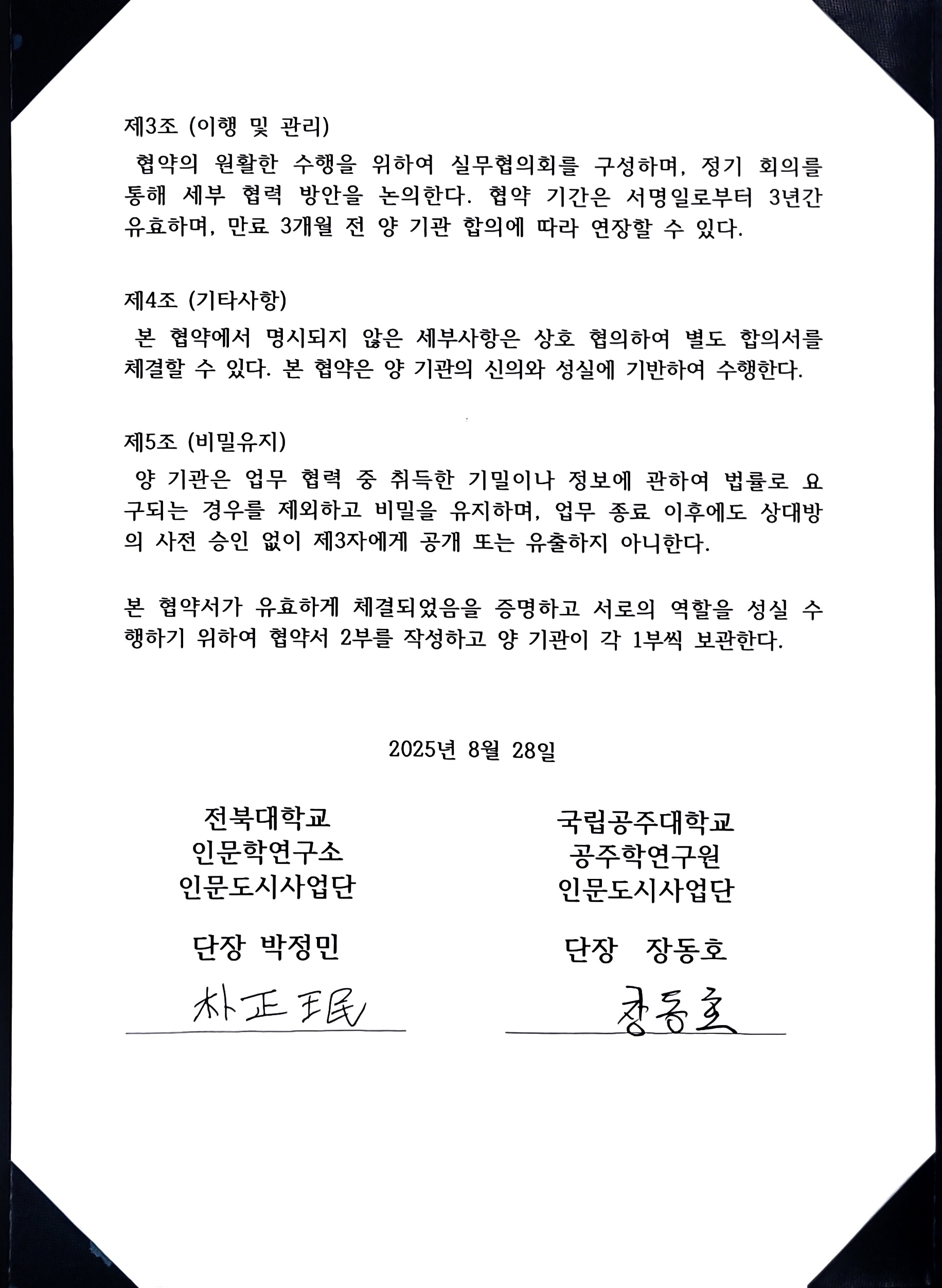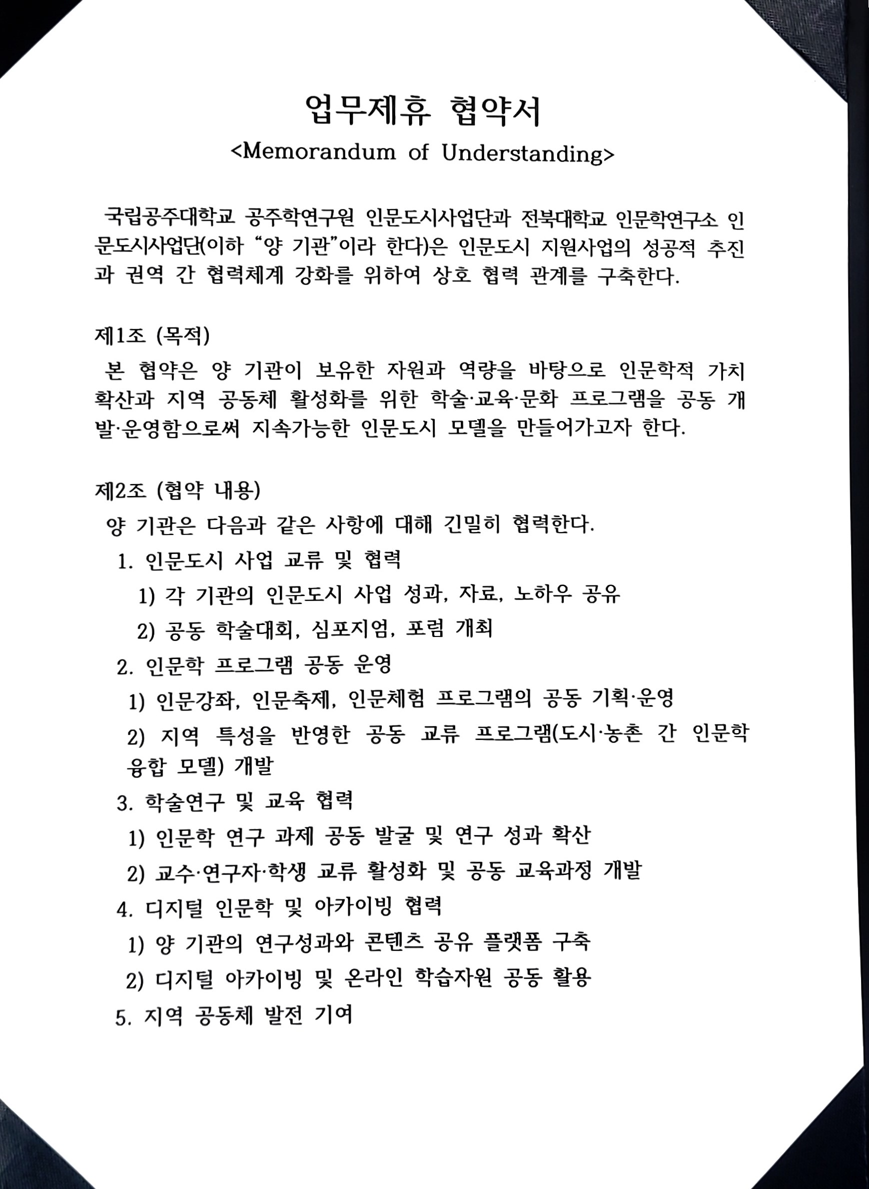 전북대학교 인문학연구소 - 국립공주대학교 공중학연구원 인문도시사업단 MOU협약서